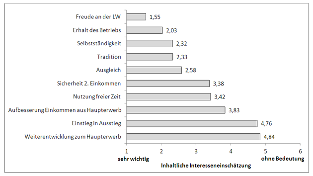 Einfluss auf die Ausprägung der Zufriedenheit haben auch die jeweiligen Beweggründe für die Bewirtschaftung des landwirtschaftlichen Betriebs. Bei der Befragung der Betriebsleiter nach deren Motiven für die Bewirtschaftung eines Nebenerwerbsbetriebs zusätzlich zu ihrer außerlandwirtschaftlichen Haupttätigkeit, gaben die Betriebsinhaber Folgendes an:
